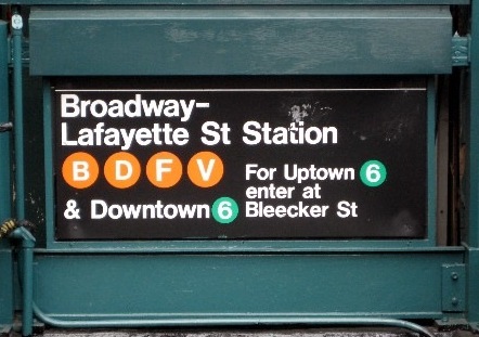 At many intersections, such as 72nd Street and Broadway on the Upper West Side, you’re free to choose any of the entrances as your point of descent — overhead signs will guide you cleverly to the proper platform for the proper line once you’ve removed yourself from the noisy scene above. But in other places — such as at the corner of Houston (pronounced “HOUSE-ton,” for all you Texans out there) and Broadway, where Soho meets The Village — you’ll find signs like the one to the left, pointing you down the stairs if it’s the downtown 6-train you seek, and directing you to another intersection altogether, some 2-1/2 blocks away, if it’s the uptown train you’re after. Let’s be clear — a scene like this one is more than just slightly intimidating. Enough to make some people throw in the towel altogether. But for me, these little surprises are all part of the fun, giving me reason to stop and collect my wits, pull out my map to plot the right course, and set out on yet another micro-journey within the greater adventure that draws me to The City in the first place.